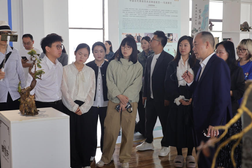作為展示銅陵銅文化的重要窗口,銅官府深耕銅文化傳承與創(chuàng)新?;顒又校~官府董事長趙敏全程陪同講解,帶領(lǐng)采風(fēng)團(tuán)參觀了特色文化園區(qū)、非遺展示廳及大師工作室。
